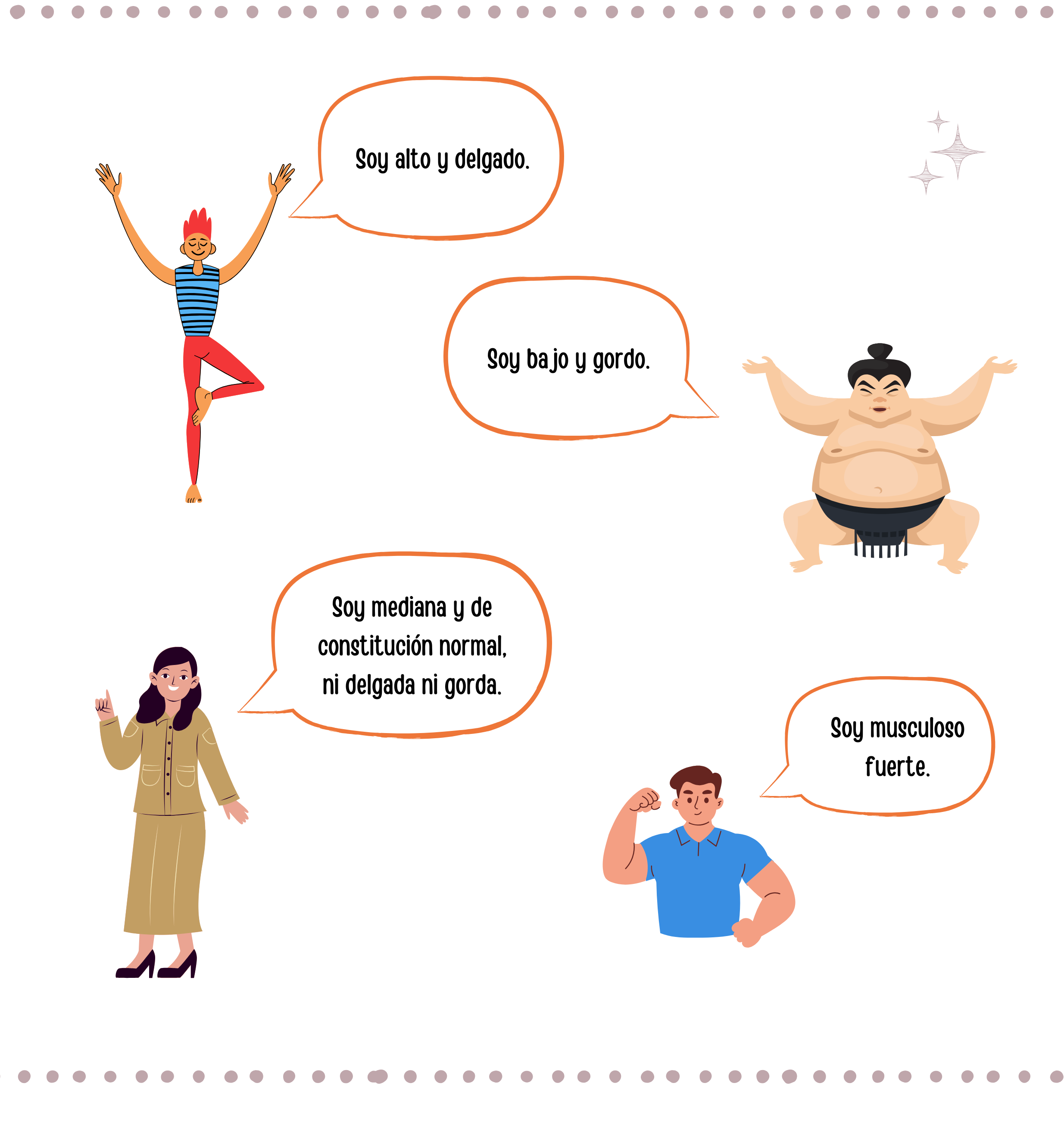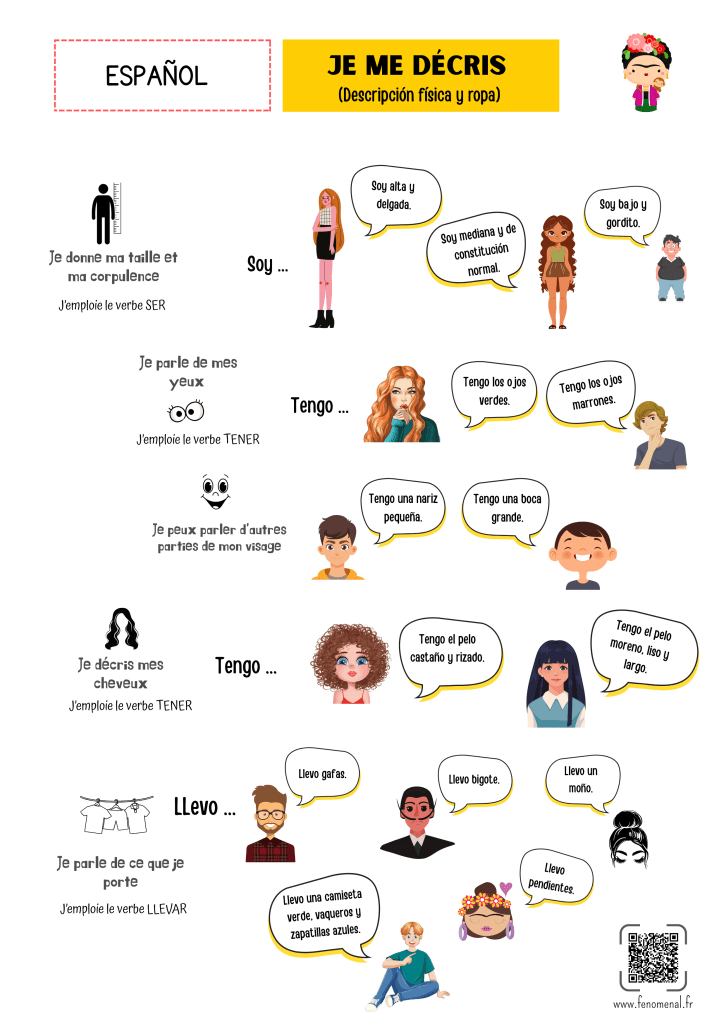 Utiliza los verbos SER, TENER Y LLEVAR y repasa el vocabulario de la descripción.