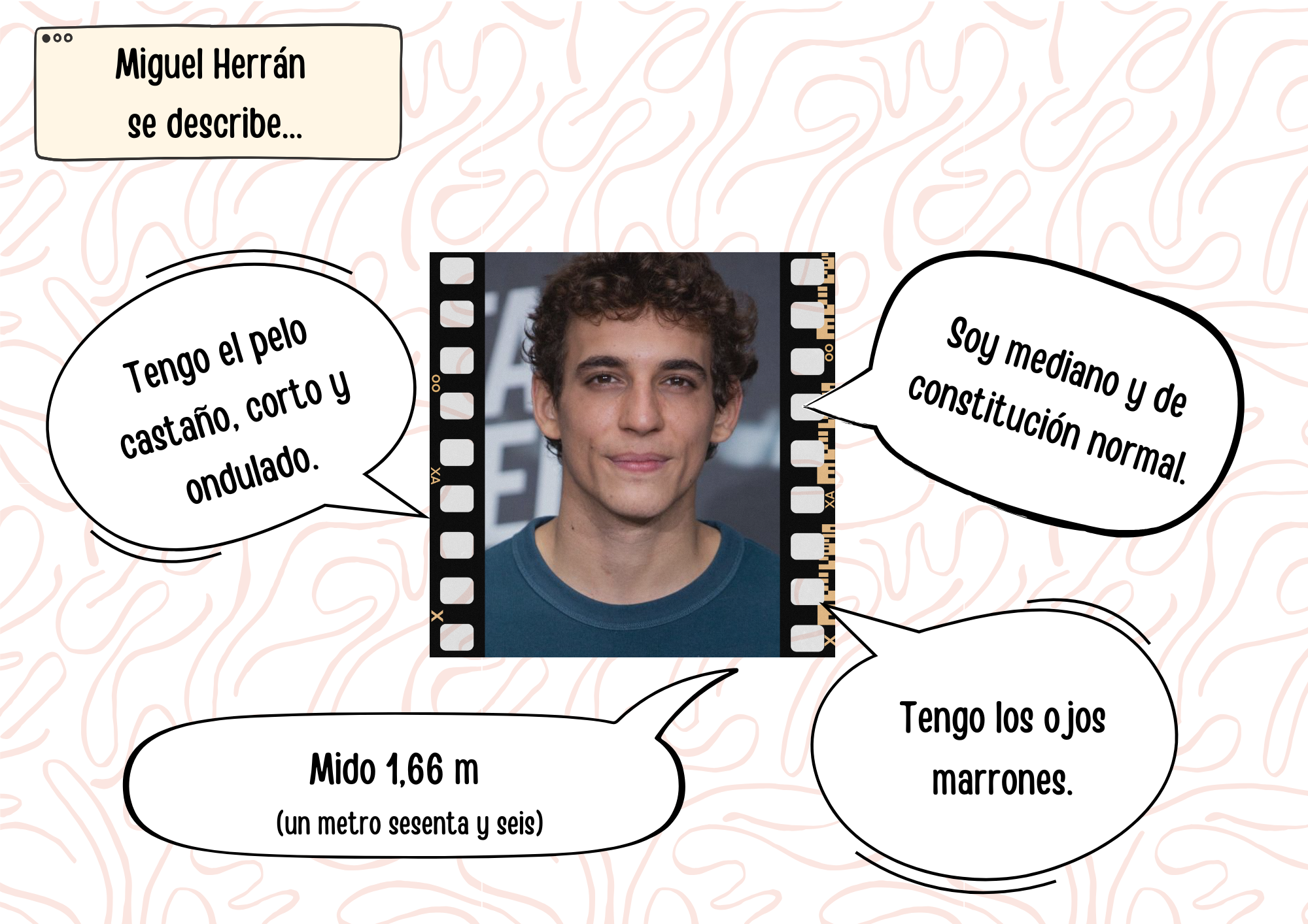 Utiliza los verbos SER, TENER Y LLEVAR y repasa el vocabulario de la descripción.