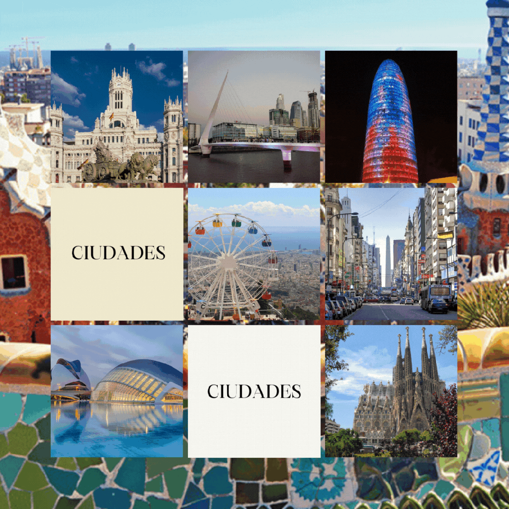 Pincha en las diferentes imágenes para acceder a las diferentes secciones: la ciudad y su vocabulario, el itinerario (preguntar su camino), el vocabulario de los servicios y las tiendas así como algunas ciudades importantes.