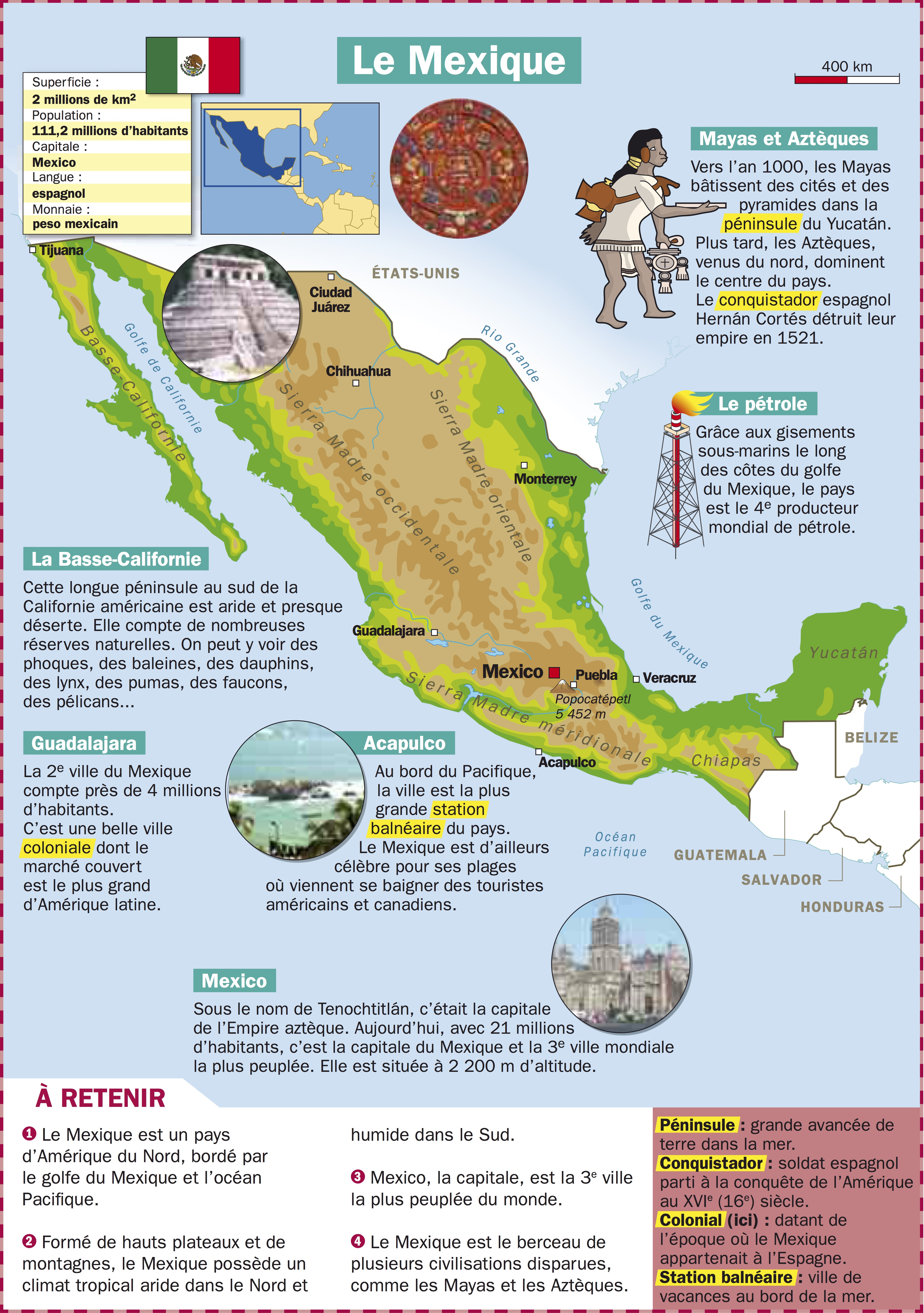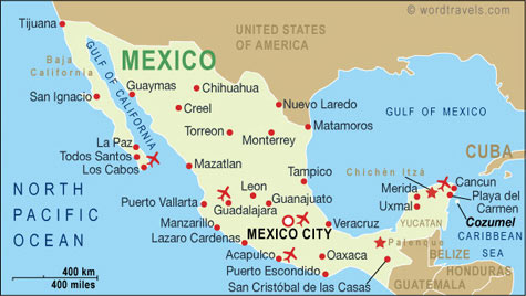 México se encuentra en América del norte. Tiene frontera con Estados Unidos (EEUU), Guatemala y Belice. Su idioma oficial es el español aunque existen muchas lenguas indígenas. Su capital es Ciudad de México y es una de las más pobladas del mundo.