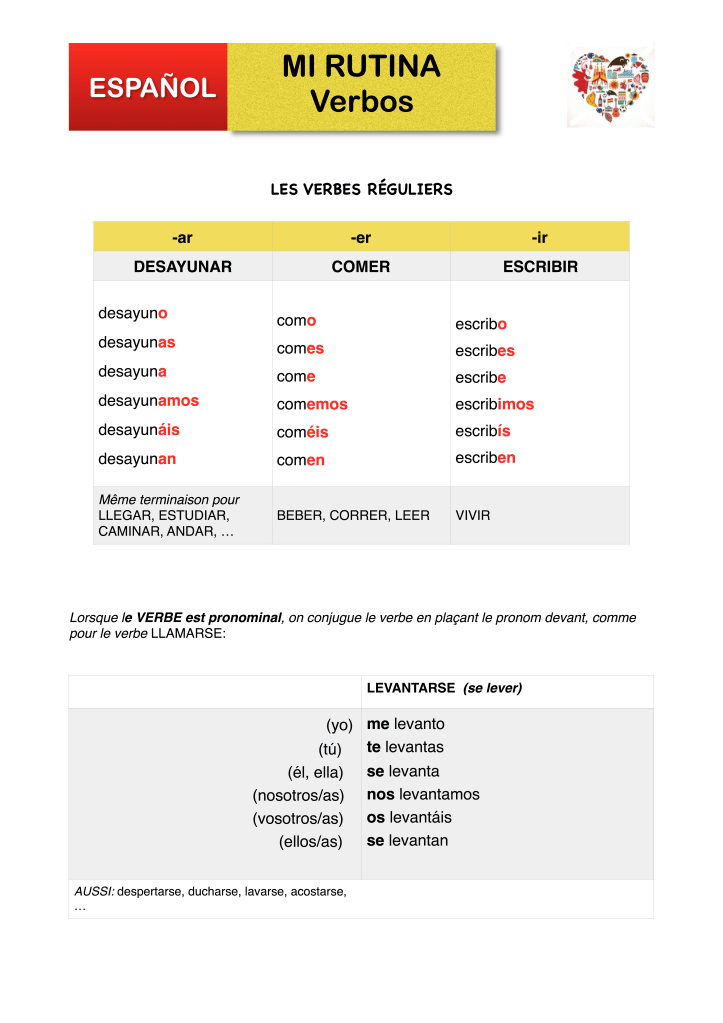 Fichas de vocabulario y gramática Primeros pasos PRESENTARSE PRESENTARSE LA DESCRIPCIÓN FÍSICA DESCRIBIR DESCRIBIR EN EL COLE MI RUTINA Soup crémeuse aux tomates avec toasties u fromage Asperges grillées et œuf poché sur toast MI RUTINA Soupe crémeuse aux tomates avec toasties au fromage Asperges grillées et œuf poché sur toast Ocio y actividades Los gustos Mi barrio, mi ciudad Mi casa MI FUTURO Tierras americanas Conjugación: el presente Conjugación: el pasado El imperativo J’aime chargement…