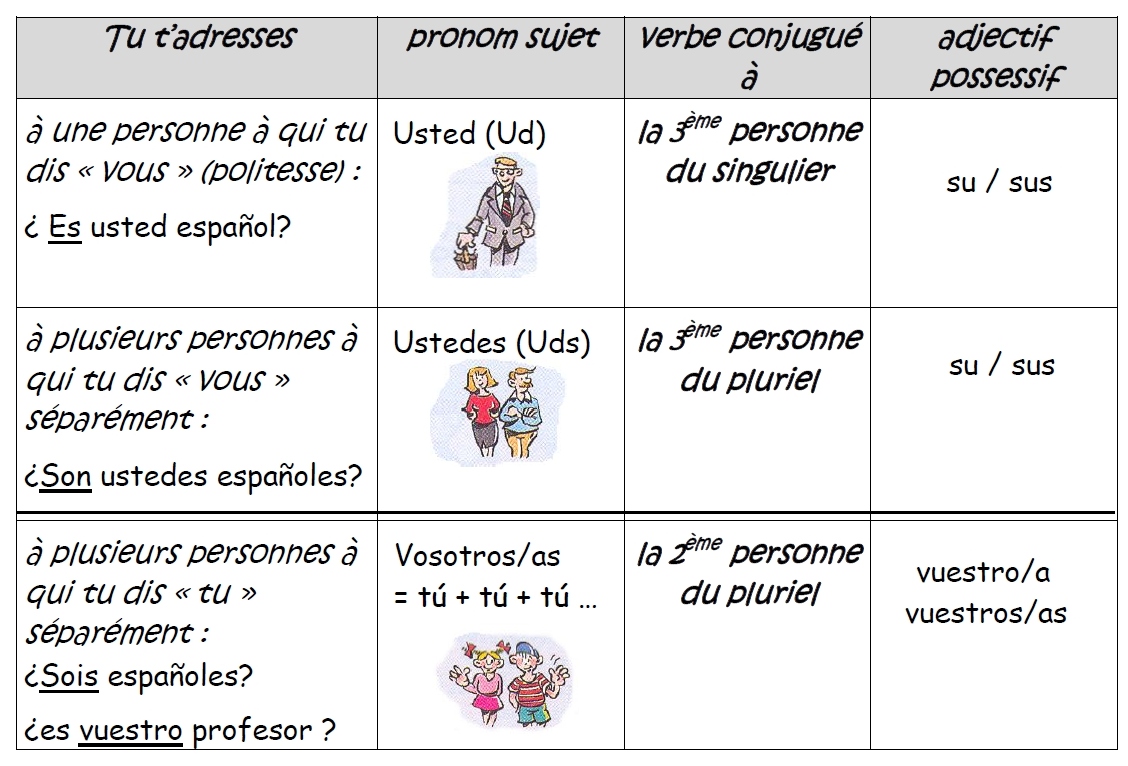 Il existe 3 « vous » en espagnol: