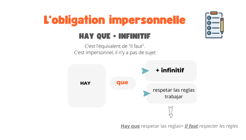 Il existe en espagnol deux types d’obligation: l’obligation personnelle et l’obligation impersonnelle.