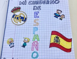 Los alumnos de 5º y 4º decoran los cuadernos de español.